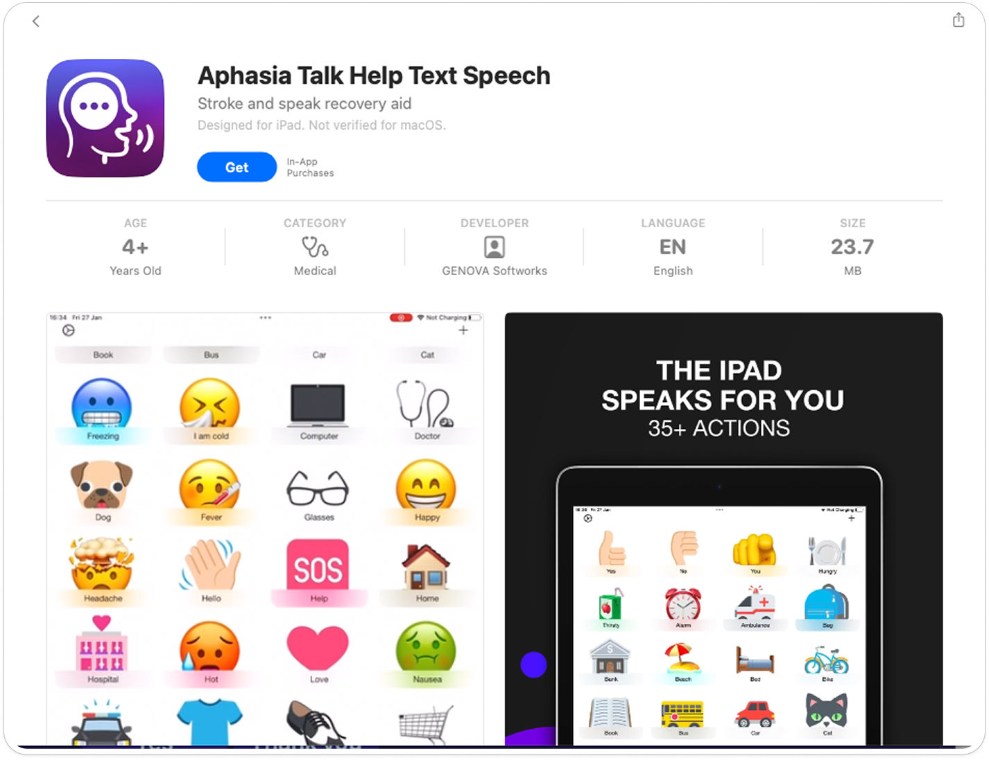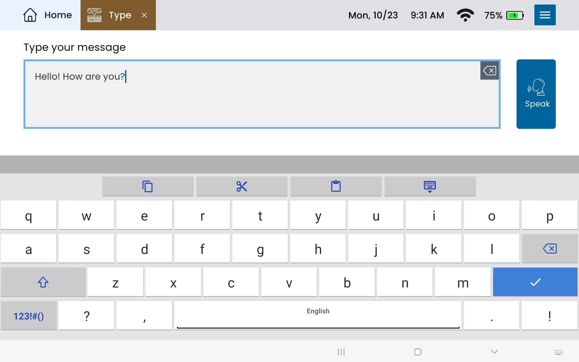 Lingraphica has a feature that allows users to type messages and have them spoken aloud.