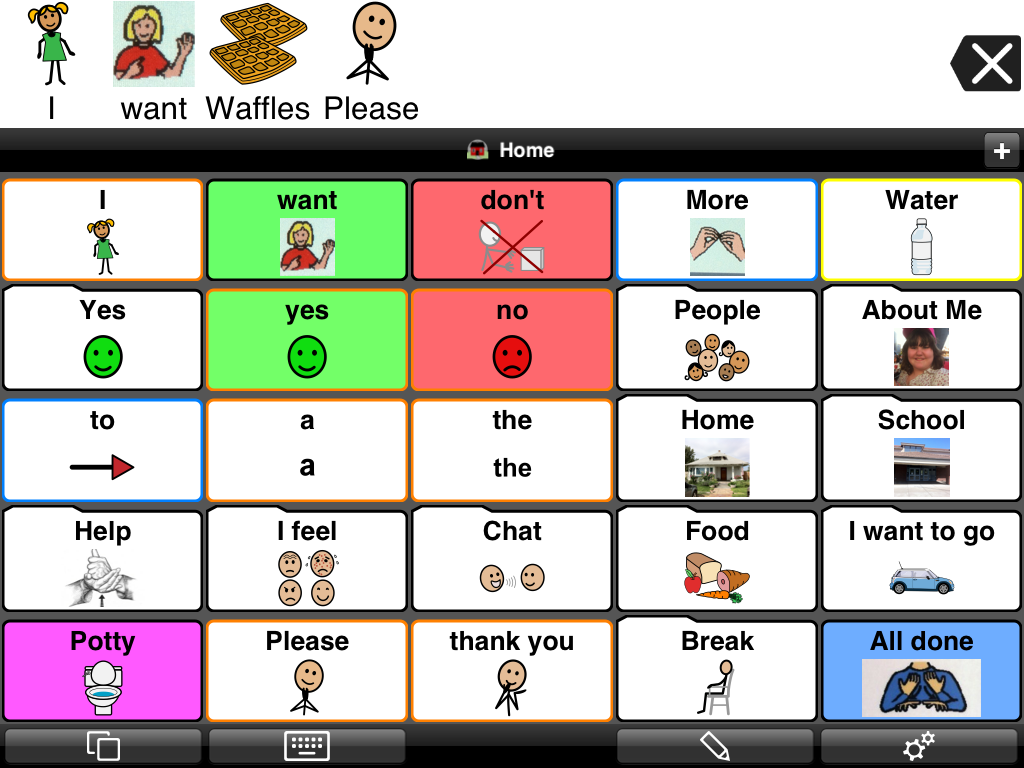 Sentence builders come in many shapes and sizes. This is probably what most people think of first when they imagine alternative communication apps. While it’s a pretty crowded space, they pretty much all look like a grid of icons with categories for a person to select from. From talking to Speech Language Pathologists and our own experience, it seems like the most prevalent/promoted solutions are: