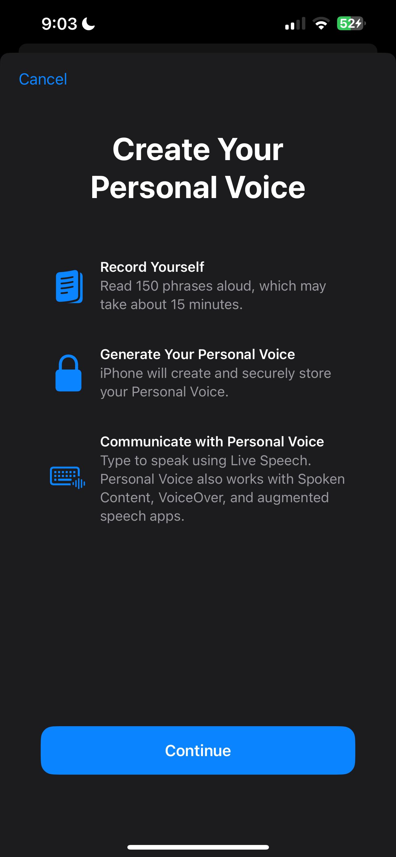 Go to Settings > Accessibility > Personal Voice